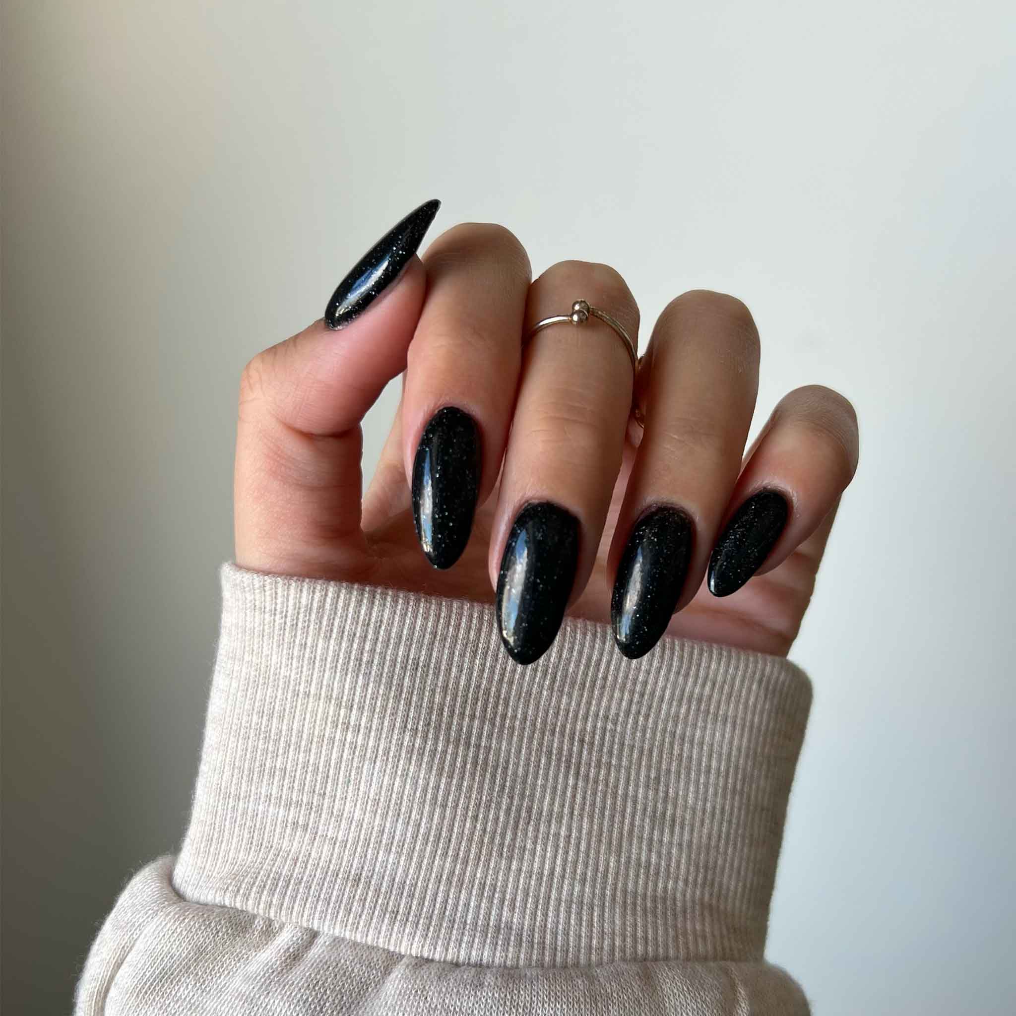 Glow Down is a charcoal nail powder with silver sparkly glitter for a truly dazzling look. Whether you're headed to a party or just want to give your nails a little extra wow factor, Glow Down is the way to go. Perfect for creating black nail designs, this colour is the epitome of "you sparkle even in the dark."
